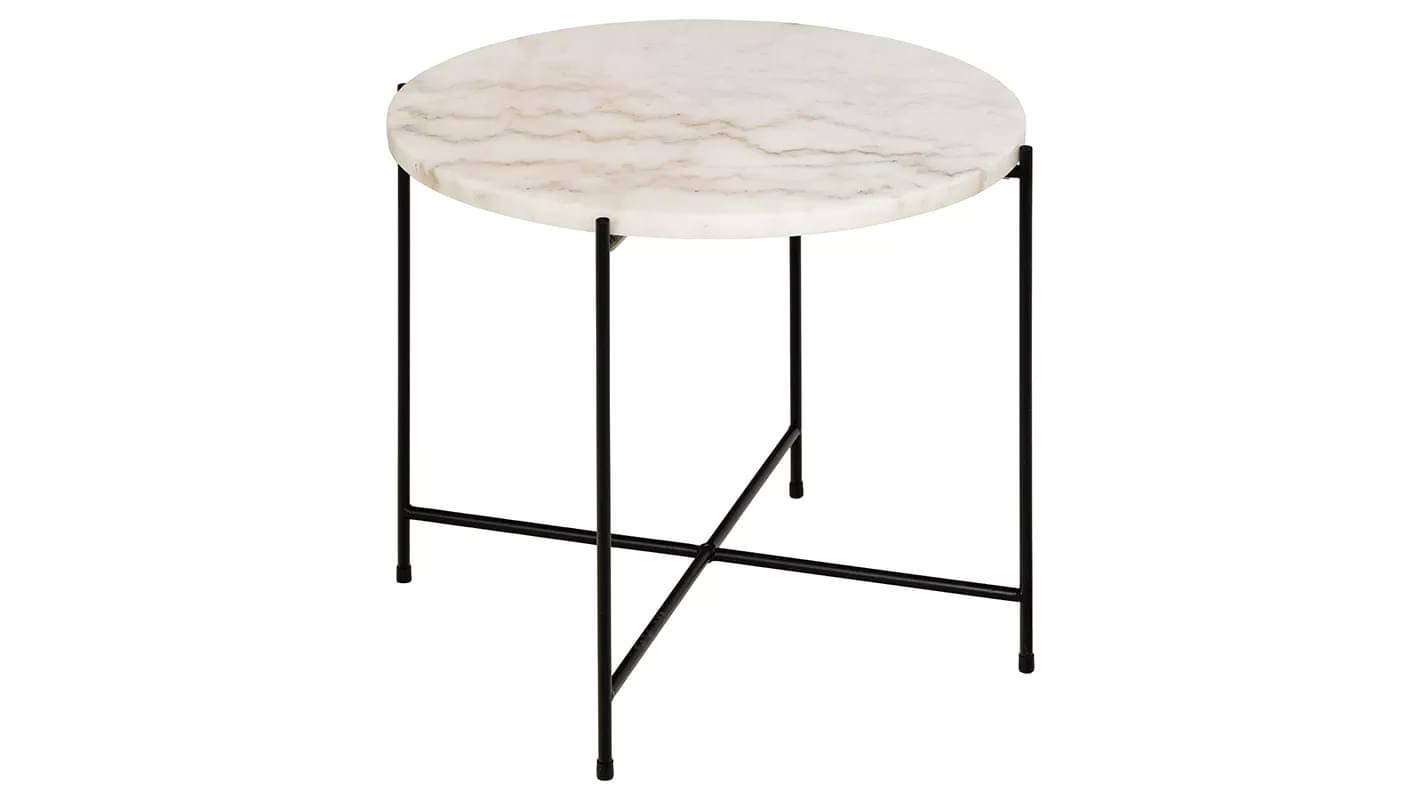 Heim Húsgögn Borð Avila hornborð 52 cm hvít marmaraáferð
