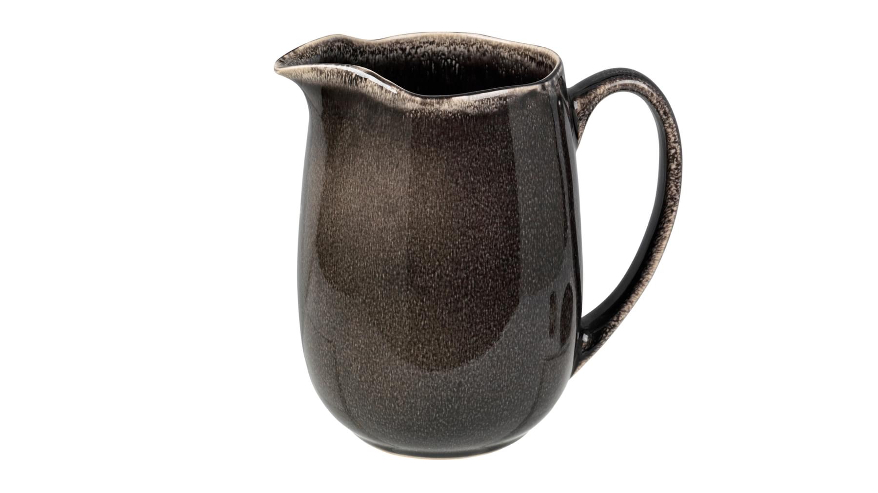 Flott kanna í Nordic Coal línunni frá Broste Copenhagen. Kannan tekur 100cl (1 lítra). Í þessari vörulínu fást fleiri útfærslur af könnum, litlum könnum fyrir mjólk/rjóma eða stórum könnum fyrir te og kaffi, en einnig krúsir og bollar í ýmsum stærðum, með undirskálum eða án, með handfangi eða án.