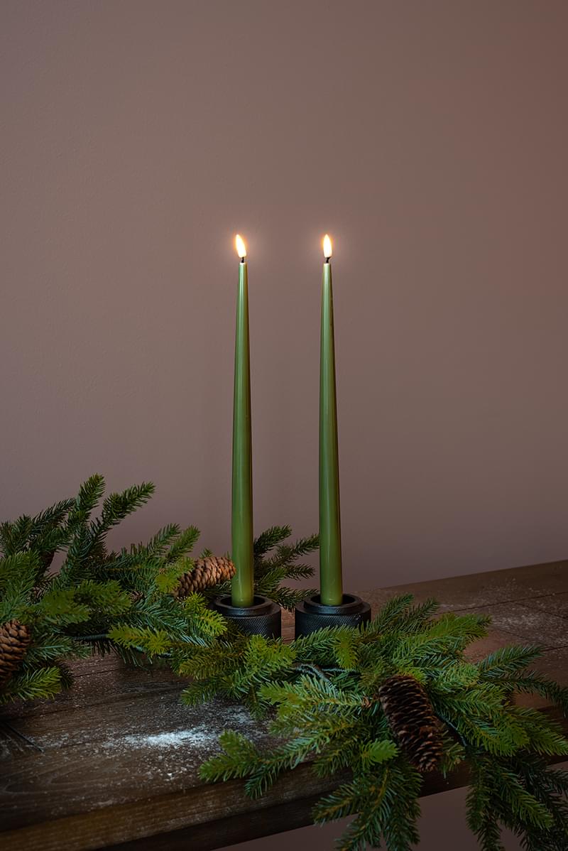 Deluxe Homeart rafmagnskerti s/2 olive græn H 38cm