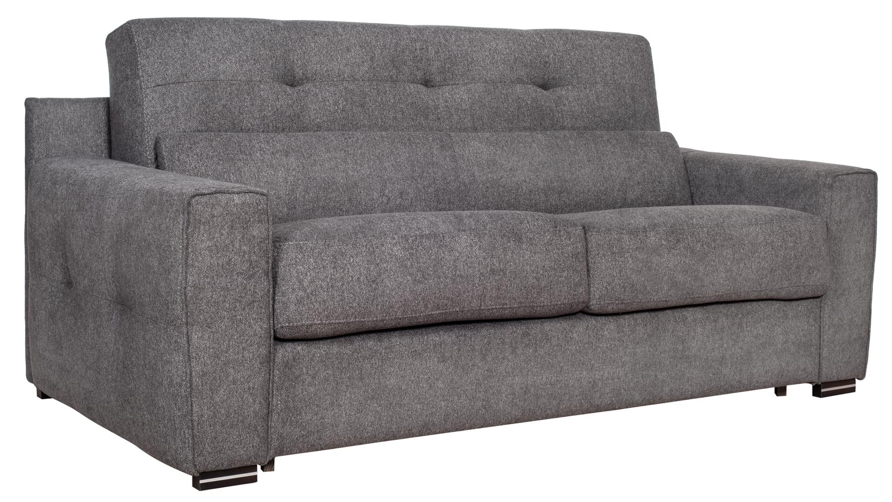Vandaður og veglegur ítalskur svefnsófi. Bak er dregið fram á einfaldan hátt til að opna fjaðrandi stálgrind sem á liggur 18 cm há og vönduð svampdýna (fylgir). Fæst í tveimur gráum tónum. Þægilegur fyrir gestina þína hvort sem þeir sitja eða liggja.
