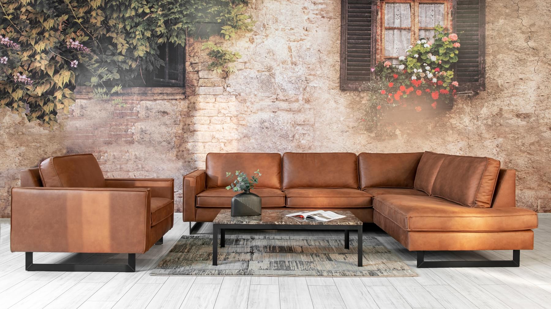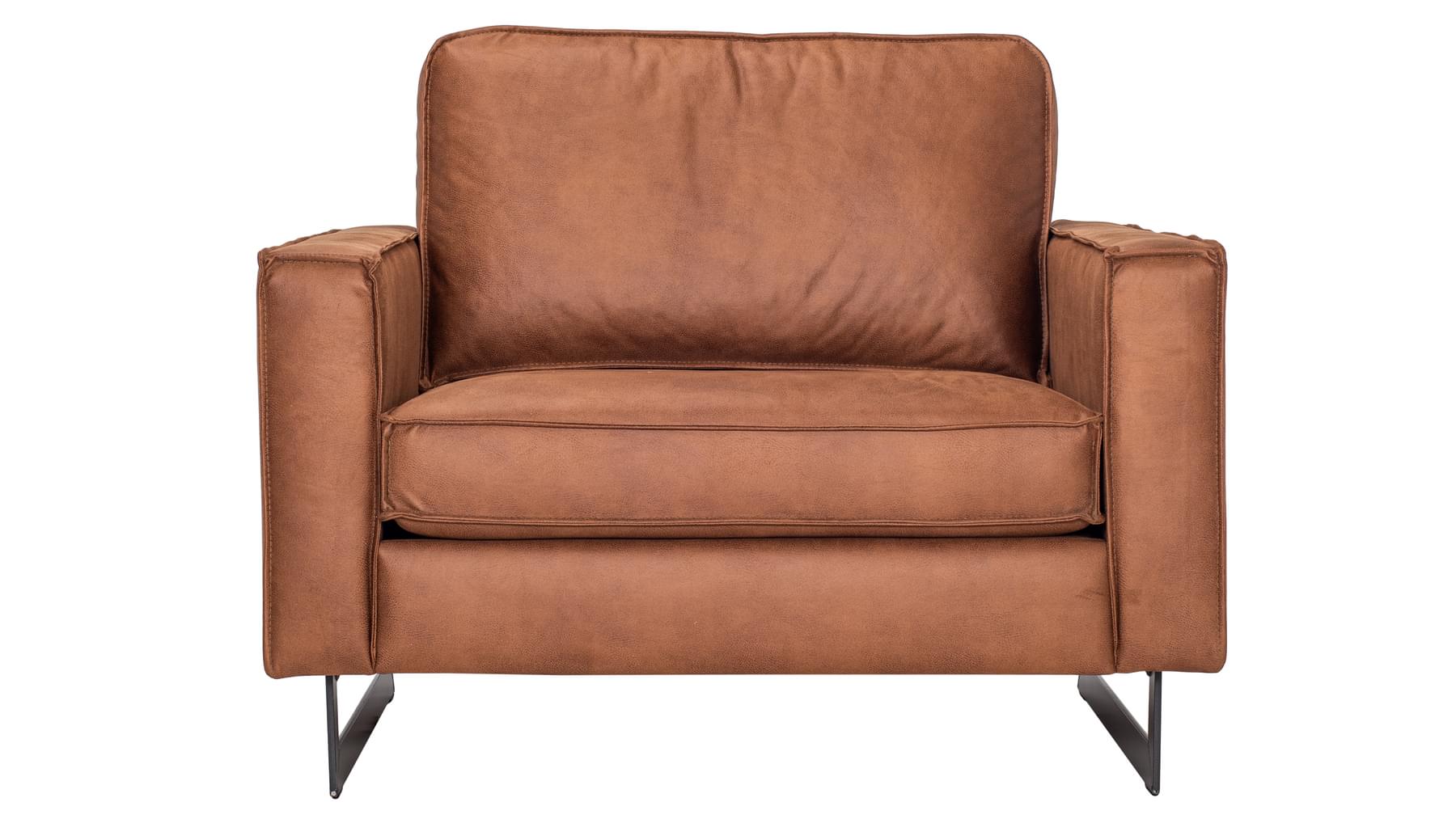 Hægindastóll sem passar við Pinto sófann eða einn og sér. Úr mjög sterku bonded leðri (leðurblöndu). Innra byrði púðanna er úr kaldpressuðum svampi, trefjafyllingu og mjúku yfirlagi. Fætur eru sterkir úr svörtu járni. Fæst í þremur litum.