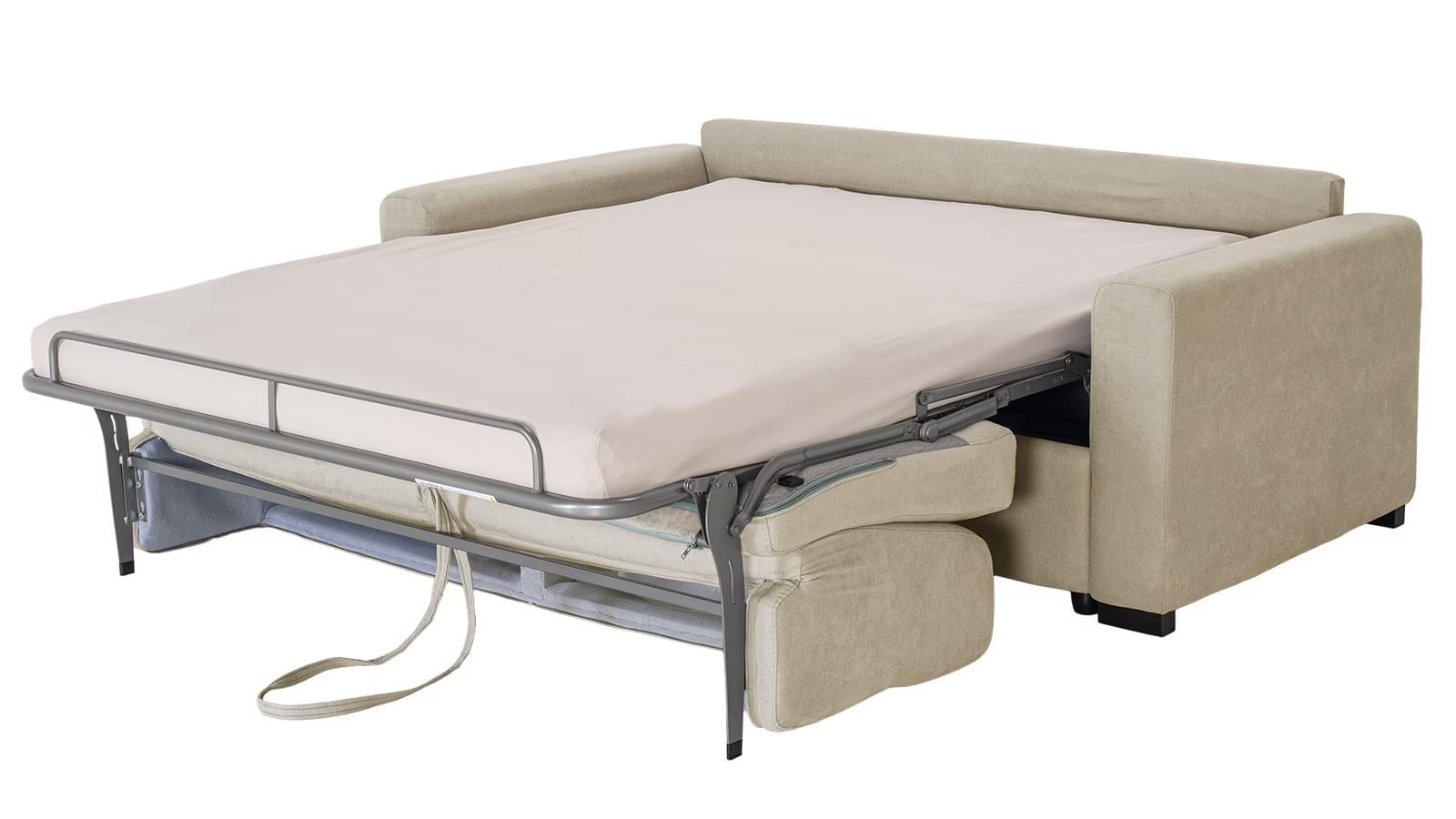 Sérlega vandaður og veglegur ítalskur svefnsófi. Bak er dregið fram á einfaldan hátt til að opna fjaðrandi stálgrind. Þar liggur heil (laus) 194×140×13 cm svampdýna sem fylgir. Svefnsófi sem fer vel með gestina. Fæst í nokkrum áklæðum.