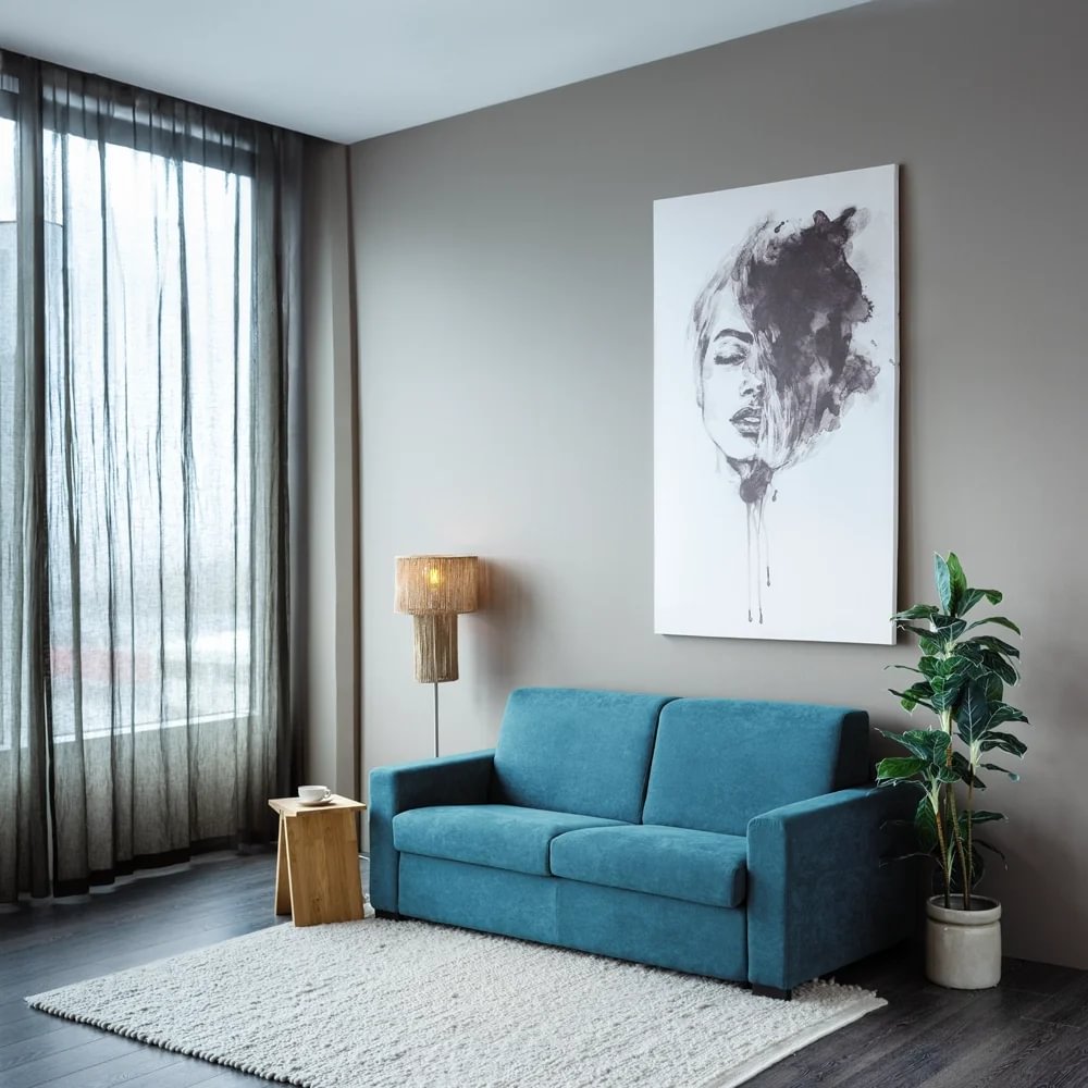 Sérlega vandaður og veglegur ítalskur svefnsófi. Bak er dregið fram á einfaldan hátt til að opna fjaðrandi stálgrind. Þar liggur heil (laus) 194×140×13 cm svampdýna sem fylgir. Svefnsófi sem fer vel með gestina. Fæst í nokkrum áklæðum.