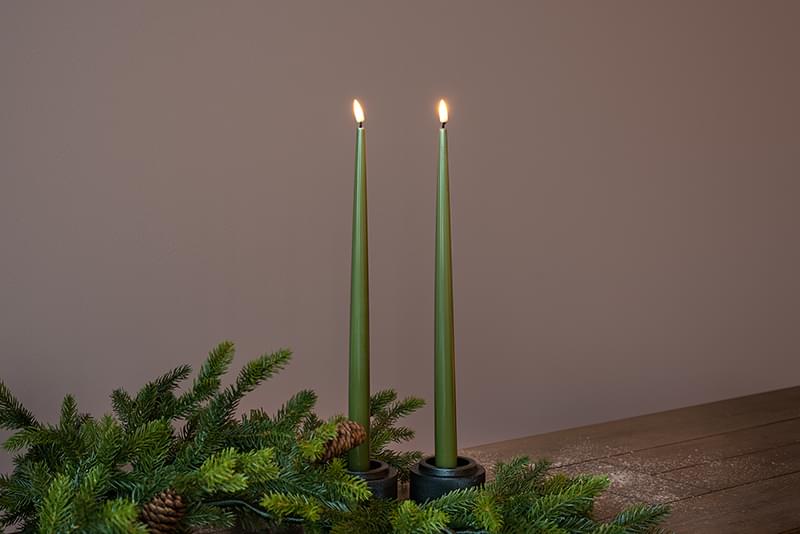 Deluxe Homeart rafmagnskerti s/2 olive græn H 38cm