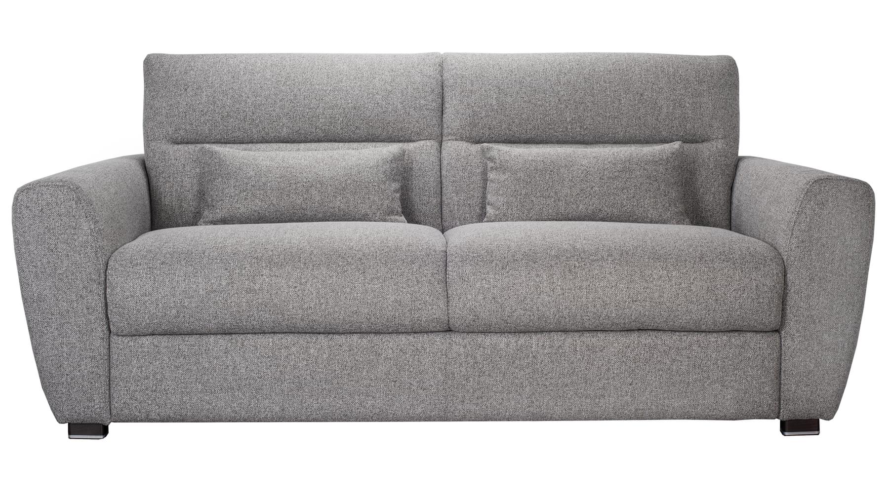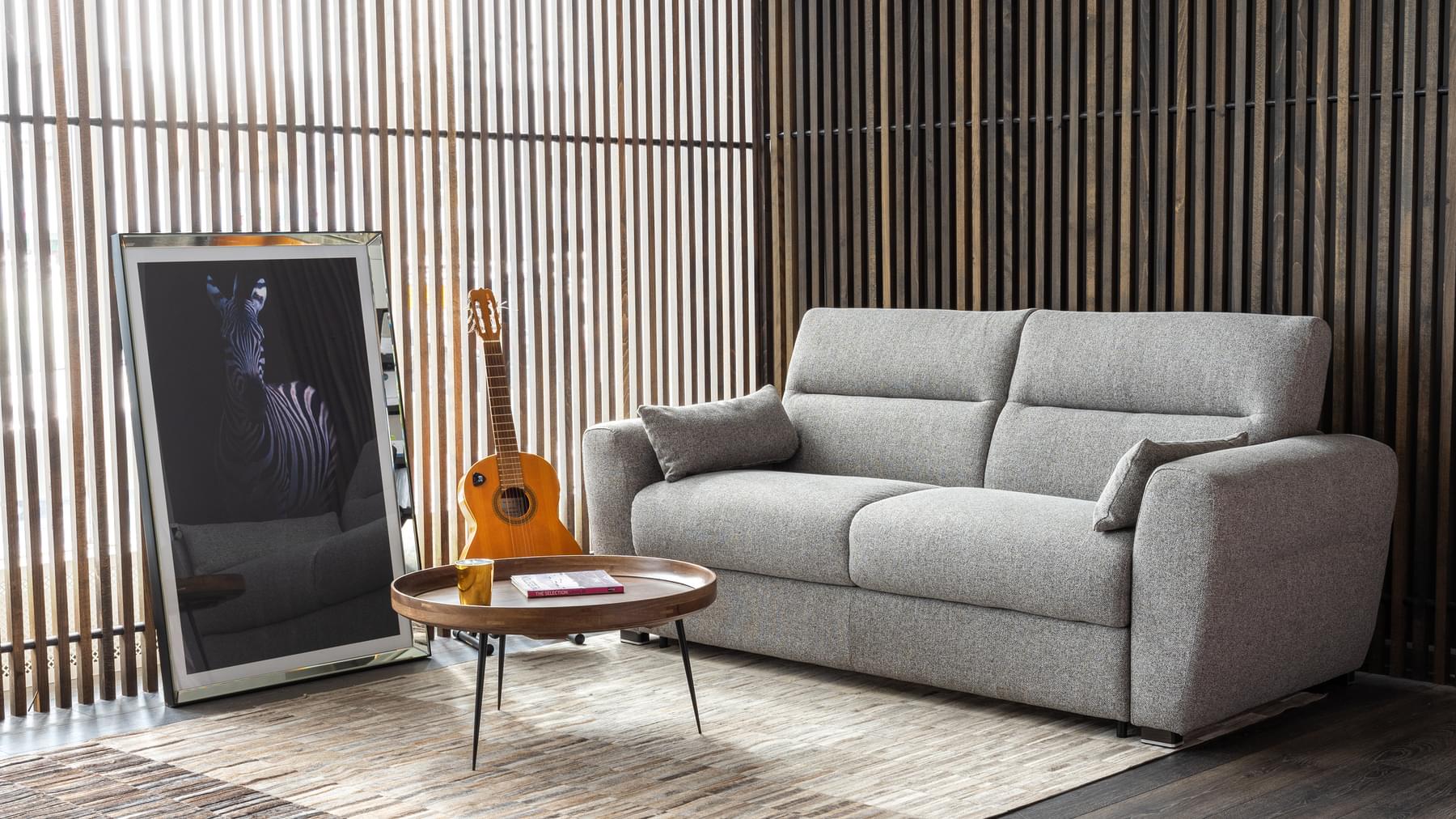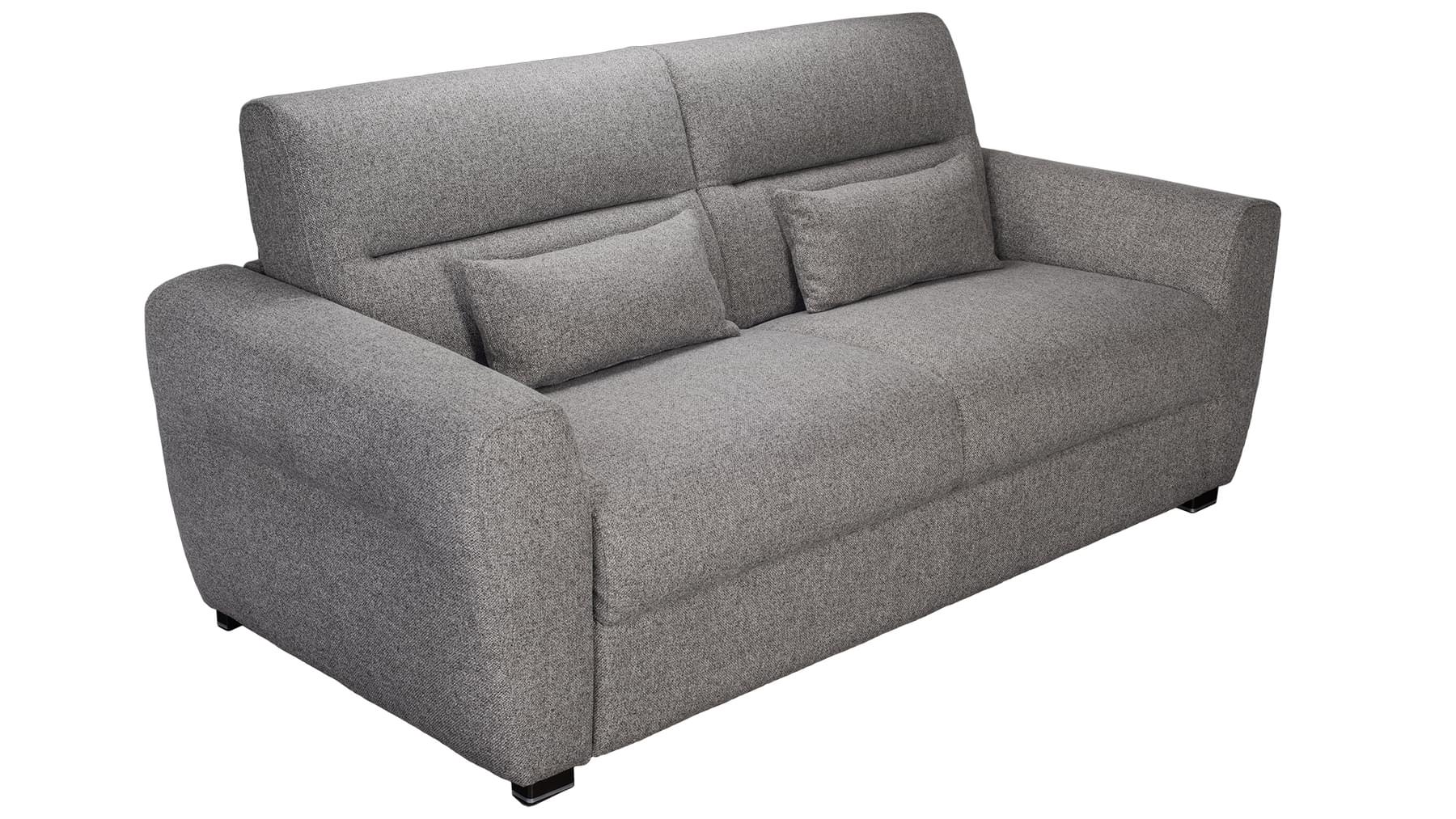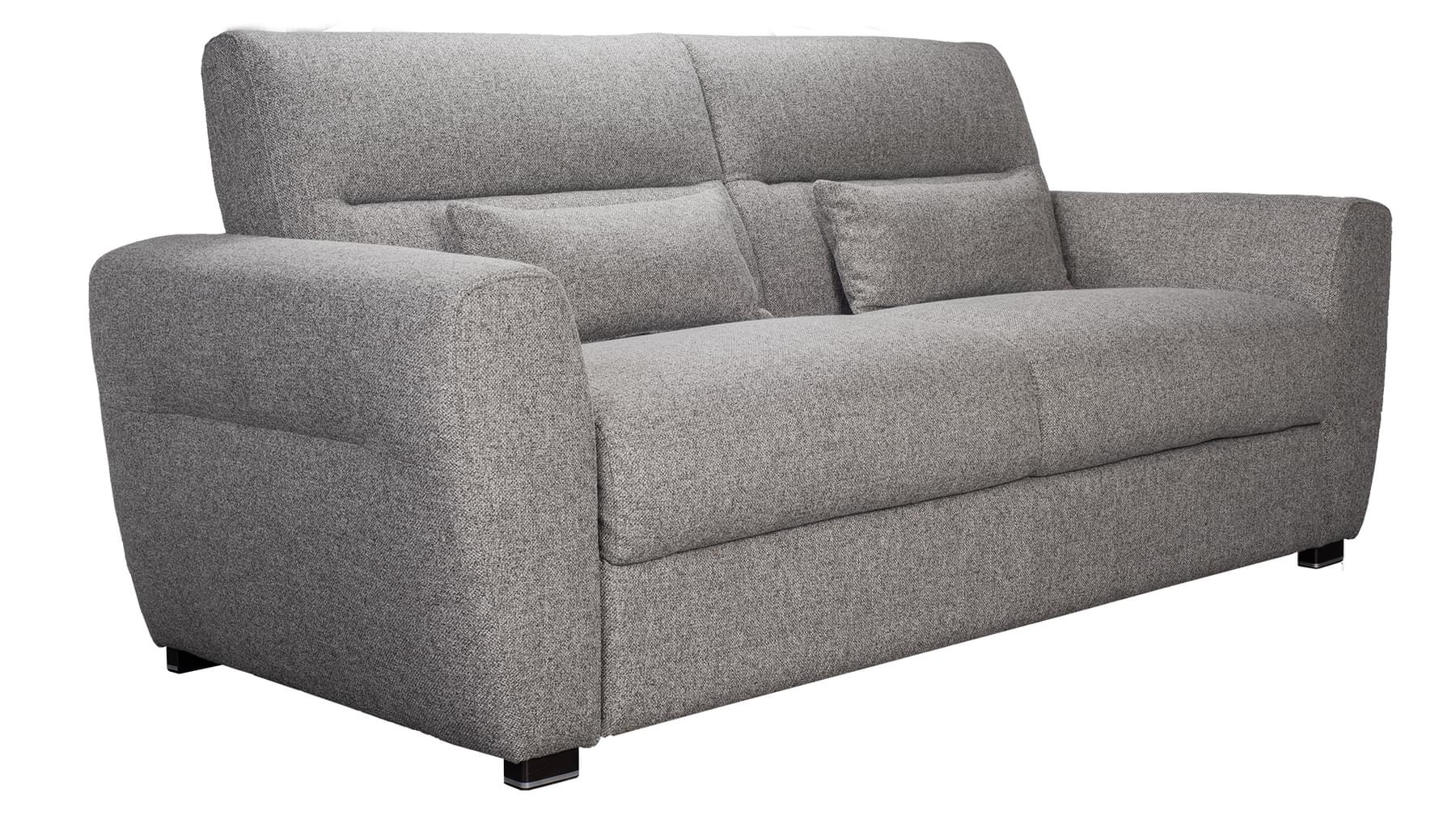 Lolly svefnsófinn er sterkur og vandaður. Þú opnar svefnsvæði (140×190 cm) með því að draga bak sófans fram og opna stálgrind með fjaðrandi botni og 18 cm þykkri heilsudýnu. Lolly fæst í nokkrum gráum tónum af áferðarfallegu og slitsterku áklæði.