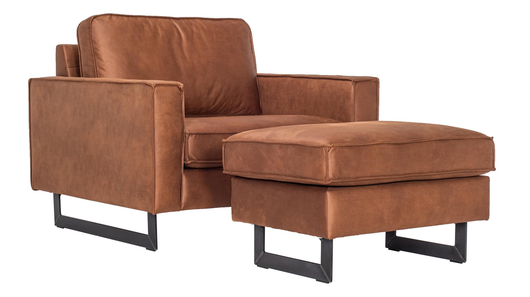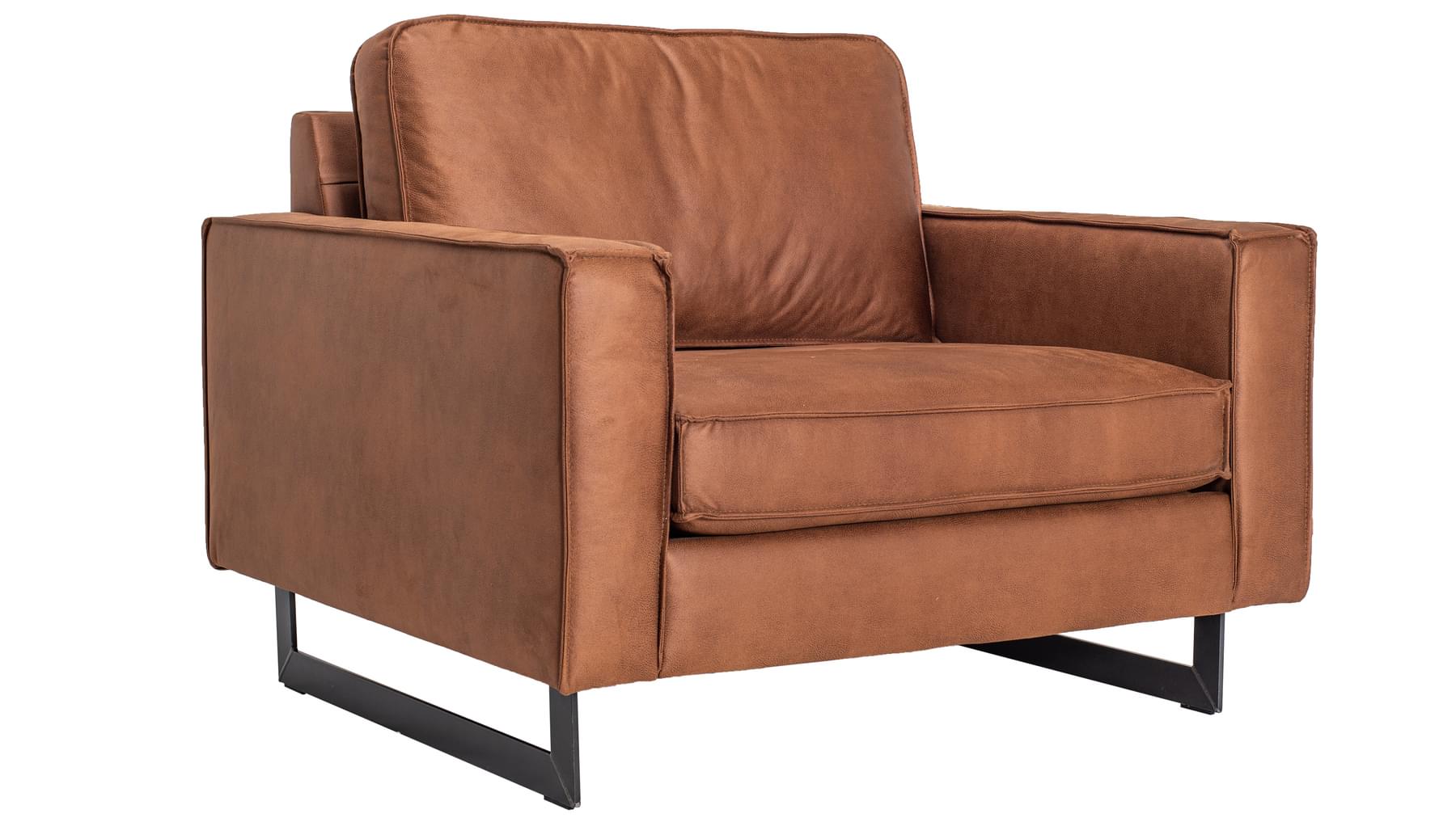 Hægindastóll sem passar við Pinto sófann eða einn og sér. Úr mjög sterku bonded leðri (leðurblöndu). Innra byrði púðanna er úr kaldpressuðum svampi, trefjafyllingu og mjúku yfirlagi. Fætur eru sterkir úr svörtu járni. Fæst í þremur litum.